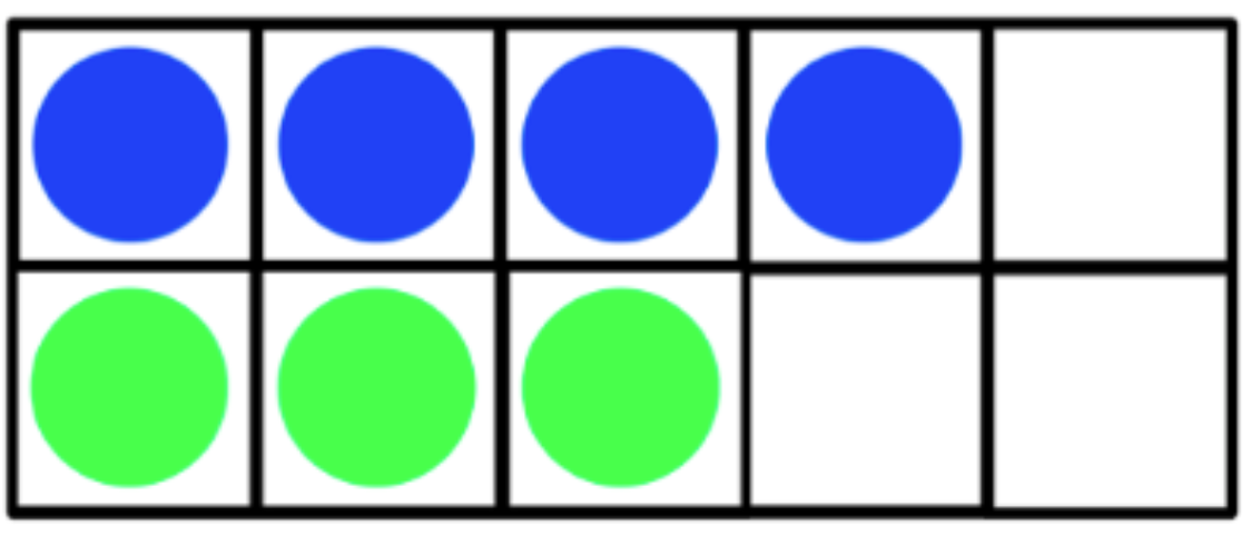 Maybe your child already knows that 3 + 3 = 6 because they've worked with that combination so many times. This can help them reason about a fact that is close to it, 4 + 3. You can show them a ten frame like the one below so they can visualize why 4 + 3 is really the same as 3 + 3 and one more. 3 + 3 = 6 and 4 + 3 is one more than 3 + 3 so 4 + 3 = 7.