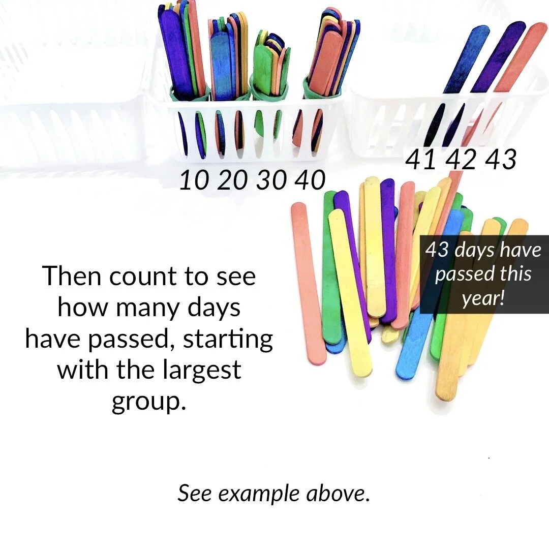 In 2020, we’re taking 2 minutes each day to add a new popsicle stick to our collection and count how many days have passed so far in 2020.